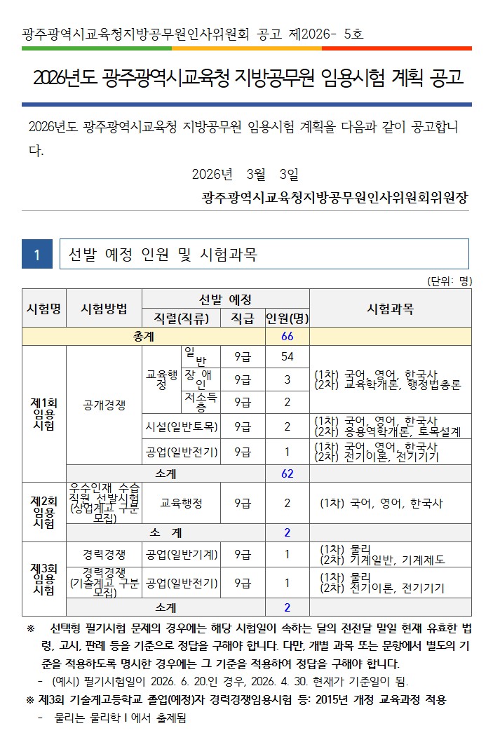 | 2026 ±¤ÁÖ±¤¿ª½Ã±³À°Ã» °ø¹«¿ø ä¿ëÀοø °ø°í|°øÁö»çÇ× | ||