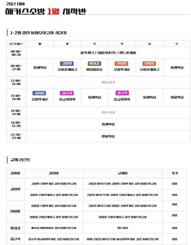 26³â ´ëºñ 1-2¿ù °Àǽð£Ç¥ ¾È³»µå¸³´Ï´Ù. *2025.12.29 ±âÁØ ¾È³çÇϼ¼¿ä, ÇØÄ¿½º¼Ò¹æÇпøÀÔ´Ï´Ù. 1-2¿ù ½ÇÀü µ¿Çü¸ðÀǰí»ç ½Ã°£Ç¥´Â ¾Æ·¡¿Í °°½À´Ï´Ù.